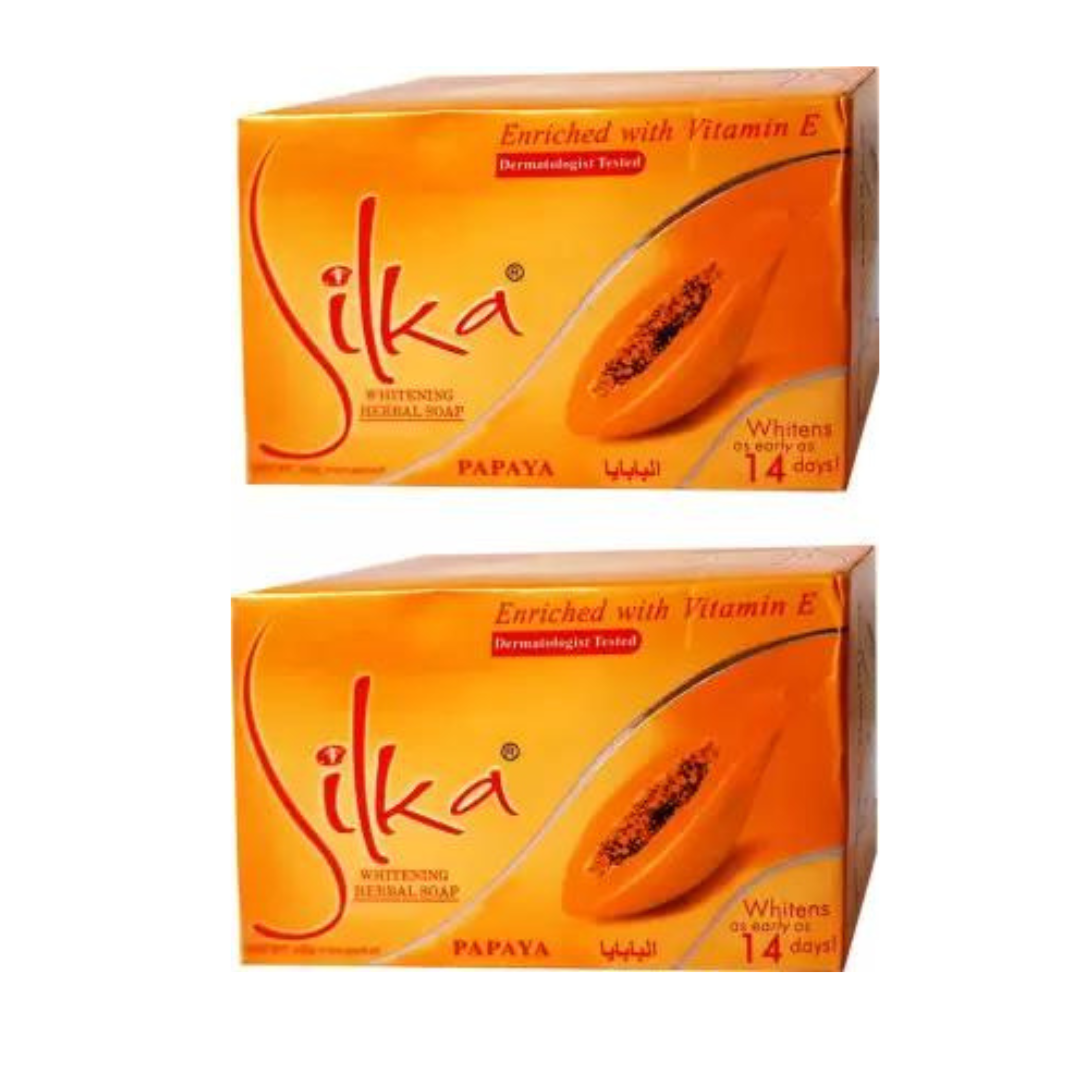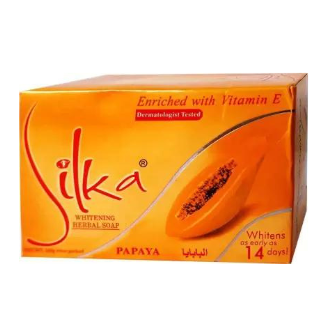 Unveil naturally glowing skin with SILKA Papaya Herbal Soap, specially formulated to fight pigmentation and uneven skin tone. Enriched with papaya enzymes, this herbal soap gently exfoliates dead skin cells, reduces dark spots, and promotes a brighter, more radiant complexion. Its natural formula ensures deep cleansing while keeping your skin soft, smooth, and refreshed.